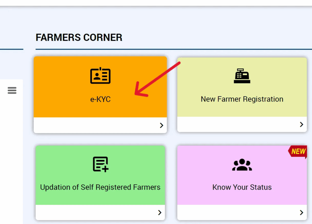 https://pmkisan.gov.in/) पर विजिट करें।‘eKYC’ विकल्प चुनें: होमपेज पर “Farmers Corner” सेक्शन के अंतर्गत दिए गए “eKYC” लिंक पर क्लिक करें।