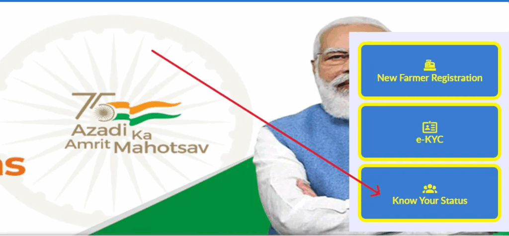 https://pmkisan.gov.in/पर विजिट करें।‘Know Your Status’ चुनें: होमपेज पर, ‘Farmers Corner’ सेक्शन के तहत दिए गए ‘Know Your Status’ विकल्प पर क्लिक करें।